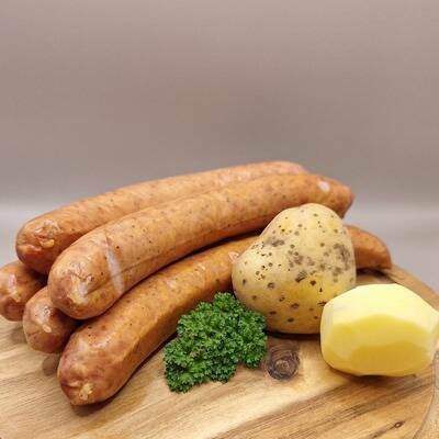 78% Schweinefleisch, 20% Kartoffeln, Pökelsalz (Kochsalz, Konservierungsstoff: Natriumnitrit), Gewürze, Konservierungsstoff: Natriummetabisulfit; Geschmacksverstärker: Mononatriumglutamat; Stabilisator: Diphosphate; Zucker, Buchenholzrauch, Schweinedarm zum Verzehr geeignet.